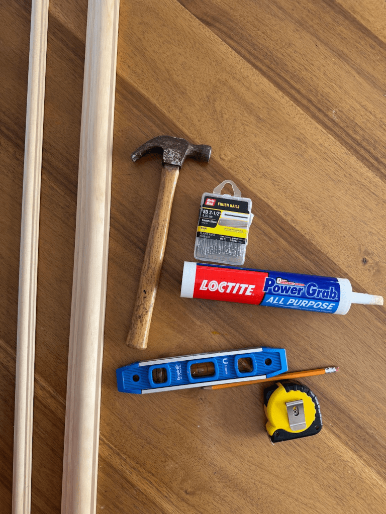 - Construction grade adhesive , which will allow you to glue the trim pieces to the wall and skip the nails.
